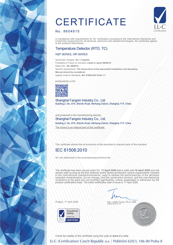 級(jí)精度產(chǎn)品制造計(jì)量許可證的極少數(shù)合法企業(yè)之一。并且率先采用了國(guó)際通用的分度號(hào)色標(biāo),從而使安裝在設(shè)備上的產(chǎn)品的分度號(hào)非常醒目,便于識(shí)別和更換,因此多年來(lái)受到熱工維檢人員的贊譽(yù)。